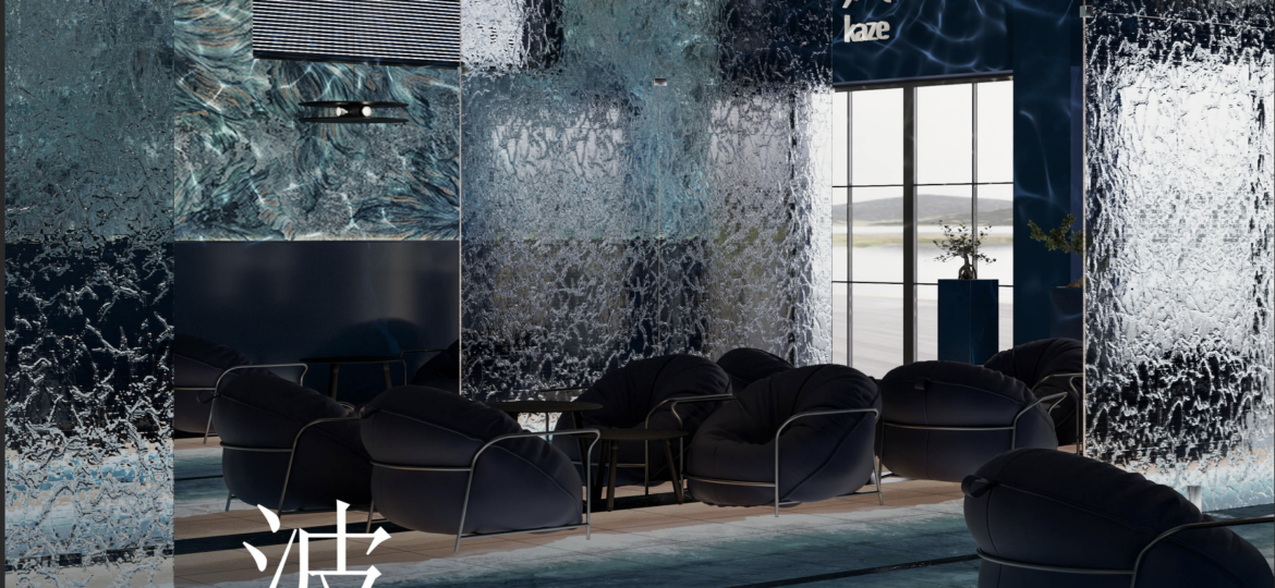 Pierwszy projekt, Tymoteusza Bojarskiego, zabiera nas do miejsca, w którym przestrzeń podzielona jest szklaną balustradą na dwie strefy. W jego projekcie lokalu, w strefie centralnej, podłoga dynamicznie współgra ze stolikami i siedziskami, pokazując wizualizację płynącej wody, na której pojawiają się dostępne dania. Gość restauracji może zamówić wybrany zestaw “przenosząc go” ruchem dłoni z nurtu wody na blat stołu.